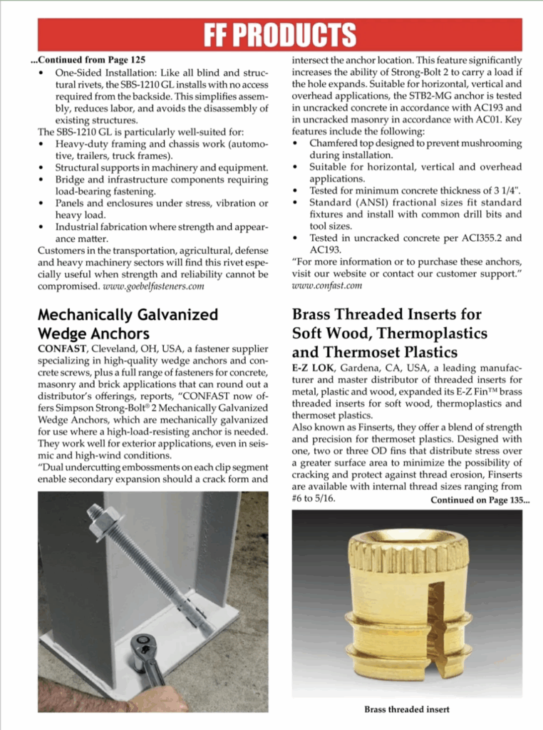 Check out this month’s Fastener Technology magazine with CONFAST’s Simpson Strong- Bolt coverage and lots of other fasteners available for your projects.